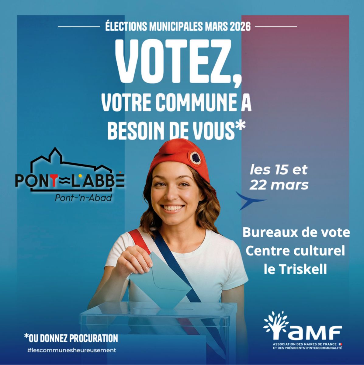 Élections Municipales 15 Mars 2026 : À l’occasion des prochaines élections municipales, nous rappelons à l’ensemble des électeurs que tous les bureaux de vote sont regroupés au Centre culturel Le Triskell. ⚠ Information importante : Les nouveaux électeurs ne recevront pas de carte électorale cette année. 🗳…